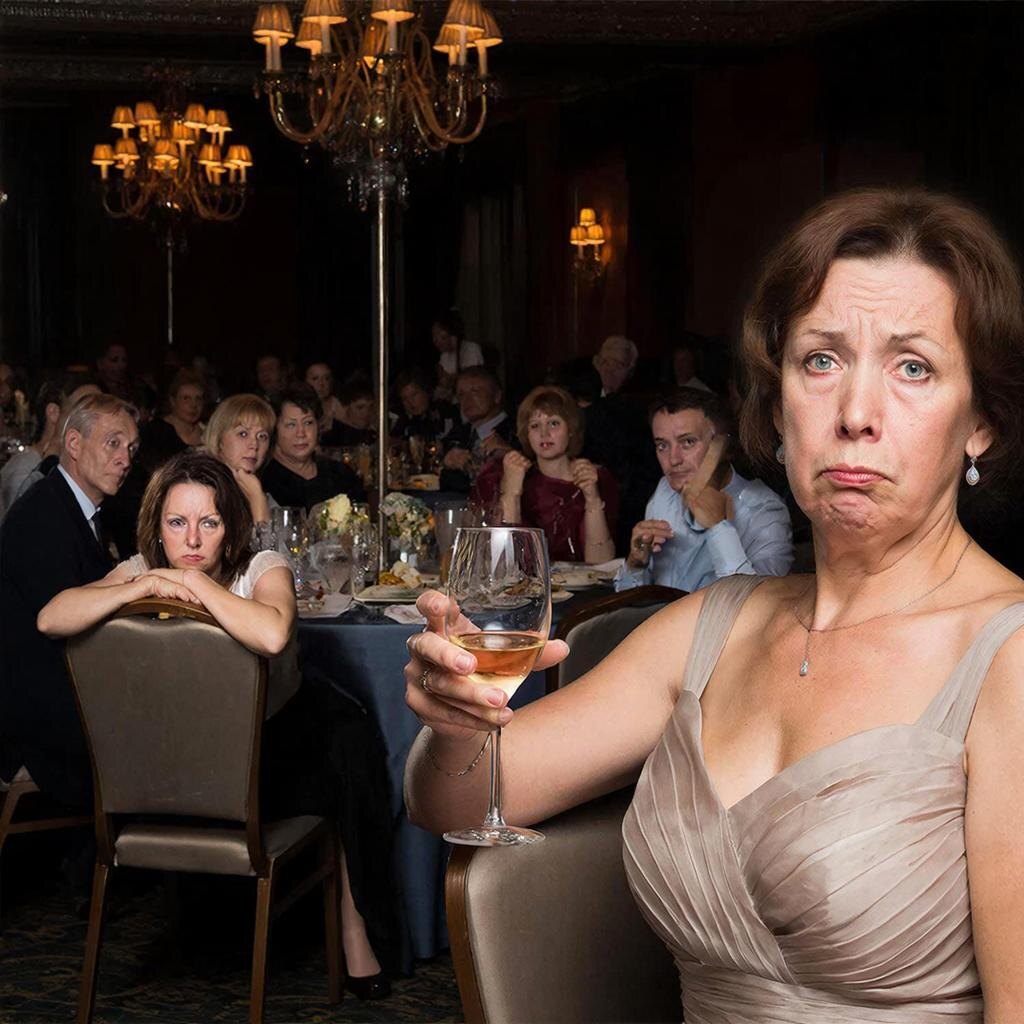 Я села, положила руки на колени и стала смотреть на зал. Центральный стол был накрыт белой скатертью, на нём стояли дорогие салаты, тарелки с рыбой, фрукты. Гости сидели в нарядных платьях и костюмах, смеялись, звенели бокалами. Я увидела Дениса. Он сидел рядом с матерью, по правую руку от неё. Слева от свекрови сидела незнакомая женщина: молодая, с длинными светлыми волосами, в ярко-красном платье, которое явно стоило больше, чем вся моя зарплата за месяц. Она что-то говорила свекрови, та смеялась и похлопывала её по руке.