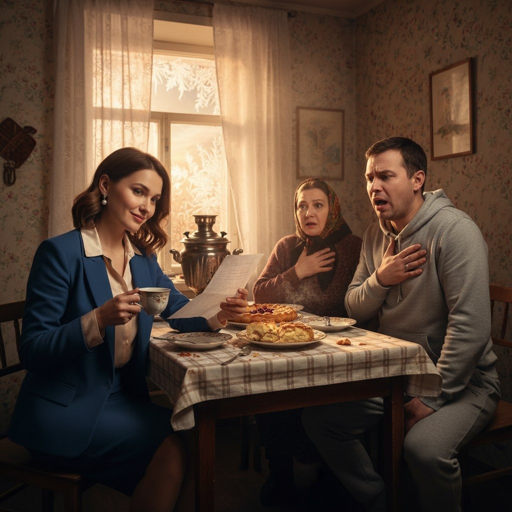Вадик просиял, мама с облегчением выдохнула и потянулась за чайником: — Вот! Я же говорила, что у нас золотая дочь! Завтра же пойдете к нотариусу…