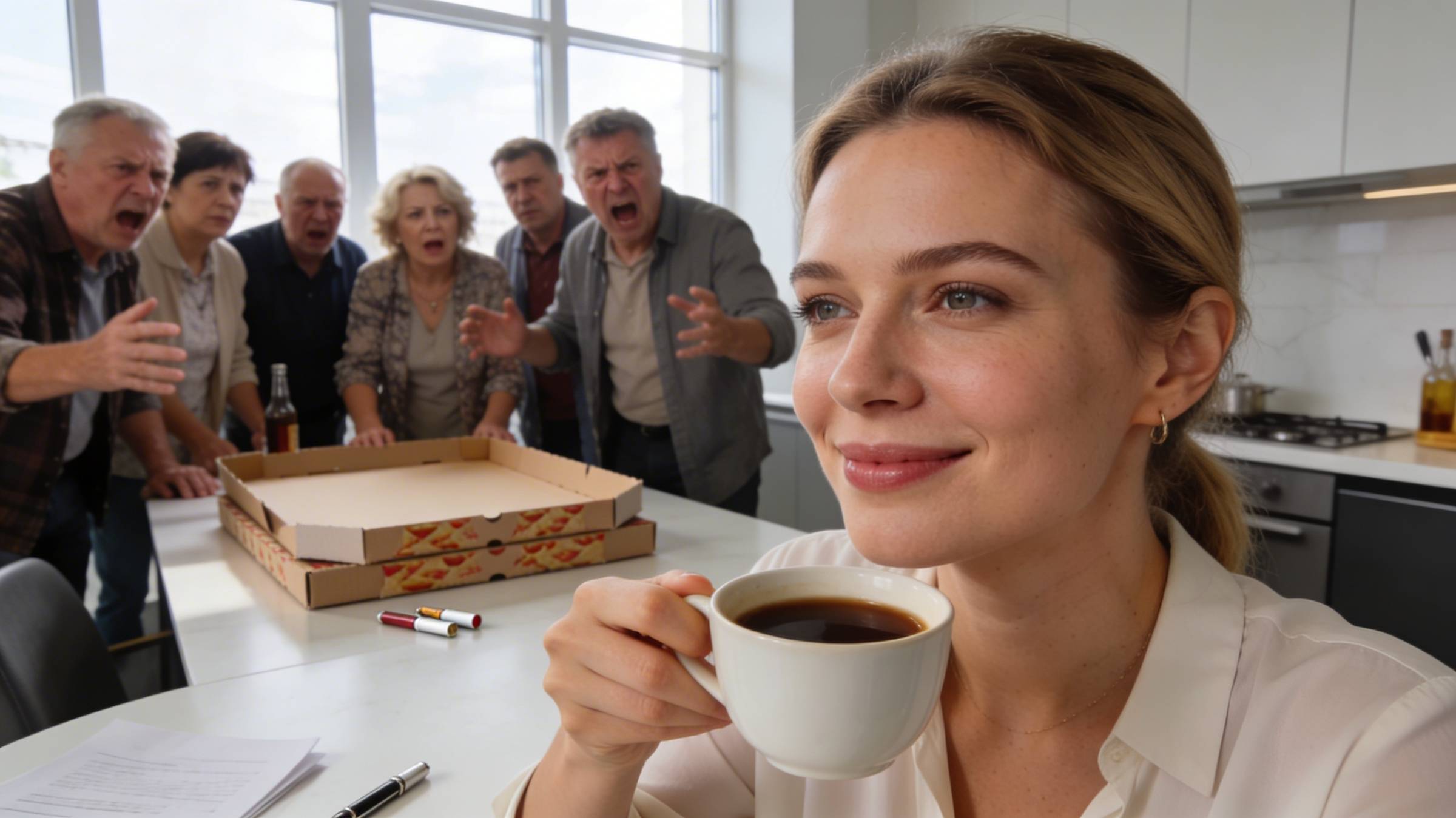 Родственники вошли на кухню и замерли. Нина сидела за идеально чистым пустым столом с изящной чашечкой в руках. Никаких скатертей. Никаких салатников. Никакого пирога.