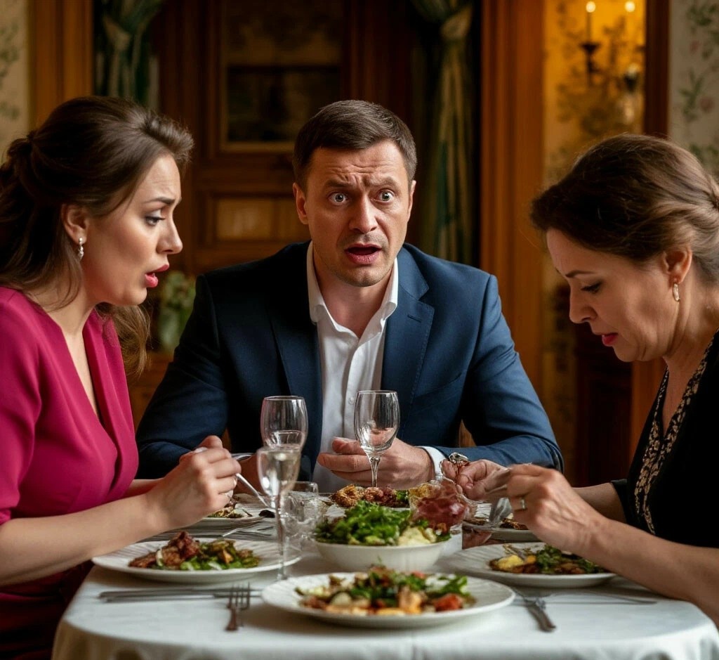 Гости ахнули. Лена прикрыла рот рукой. Мужчины перестали жевать и уставились на Дмитрия. Свекровь побелела, вцепилась в скатерть. Алина открыла рот, но не могла произнести ни звука.