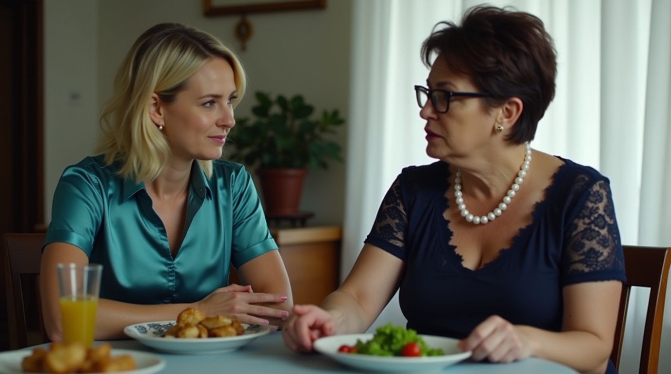 Карина долго смотрела на свекровь. Потом перевела взгляд на маму. Та сидела молча, но в глазах её было что-то тёплое, одобряющее.