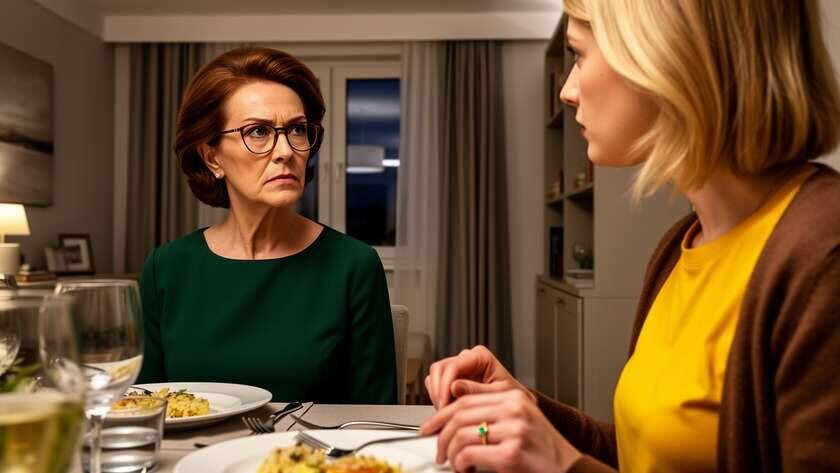 Вилка выскользнула из моих пальцев и звякнула о фарфор. Сердце ухнуло куда-то вниз, в живот, а потом забилось так, что, казалось, весь дом слышит этот стук. Я подняла глаза на свекровь. Она сидела напротив, прямая, как китель на вешалке, и смотрела на мою руку. На кольцо — тонкий золотой ободок с крошечным изумрудом, который при свете лампы отбрасывал зеленоватые блики на скатерть.