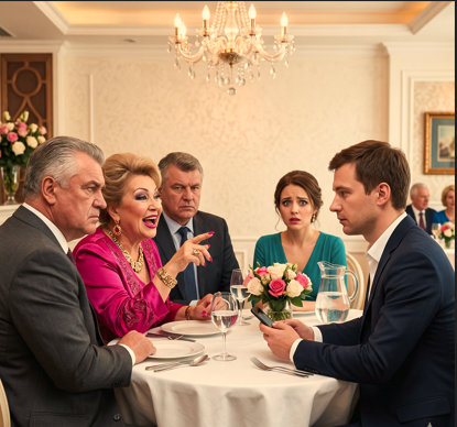 В зале повисла мертвая тишина. Кто-то из гостей на задних рядах уронил вилку — звук показался оглушительным.