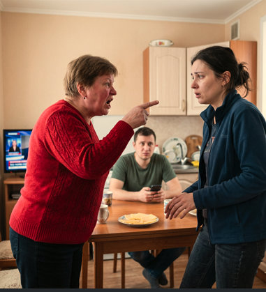 Свекровь бросилась к сыну, цепляясь за рукав его домашней футболки.