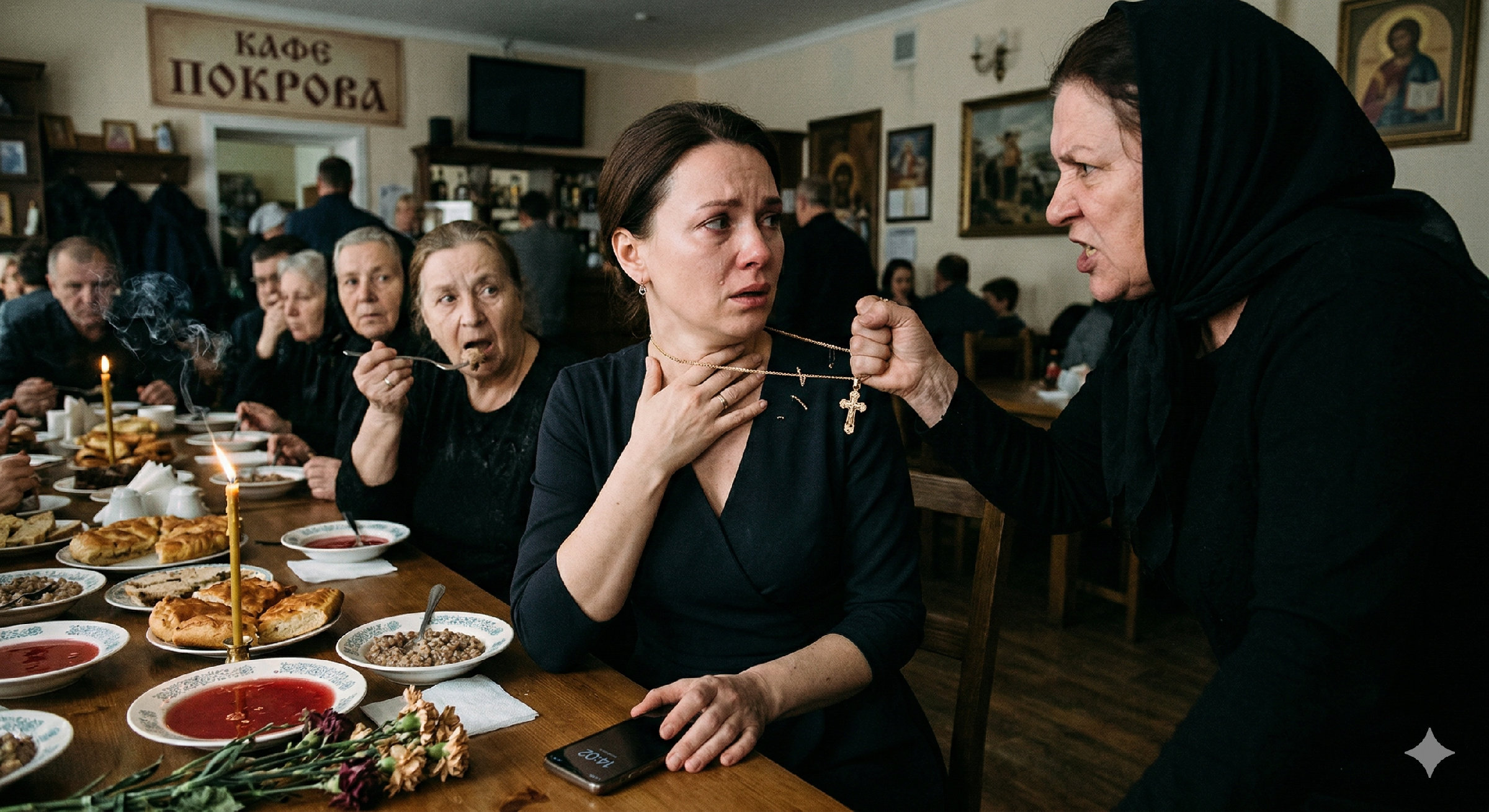 На поминках свекровь сорвала с меня крестик: «Не заслужила!» Через 14 минут её парализовал ужас