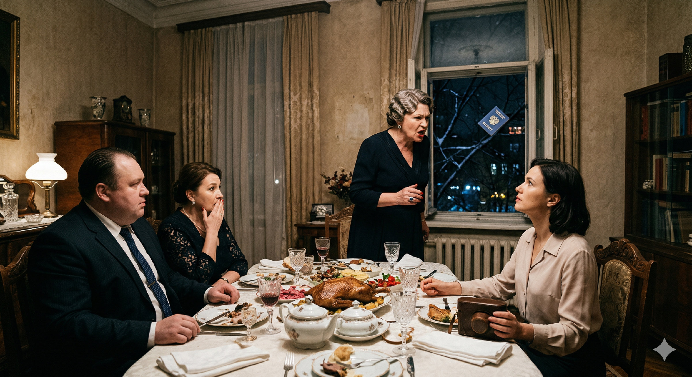 Её рука, украшенная массивным перстнем с александритом, резко дёрнулась. Она не просто взяла паспорт. Она рванула к окну, которое было приоткрыто на зимнее проветривание. С несвойственной её возрасту ловкостью она откинула шпингалет.