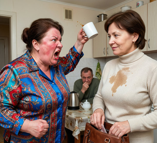 А напротив стояла моя мама, Лариса Михайловна. По ее светлой водолазке медленно расплывалось темное пятно, а с одежды капал чай. Свекровь только что выплеснула на нее содержимое своей кружки.