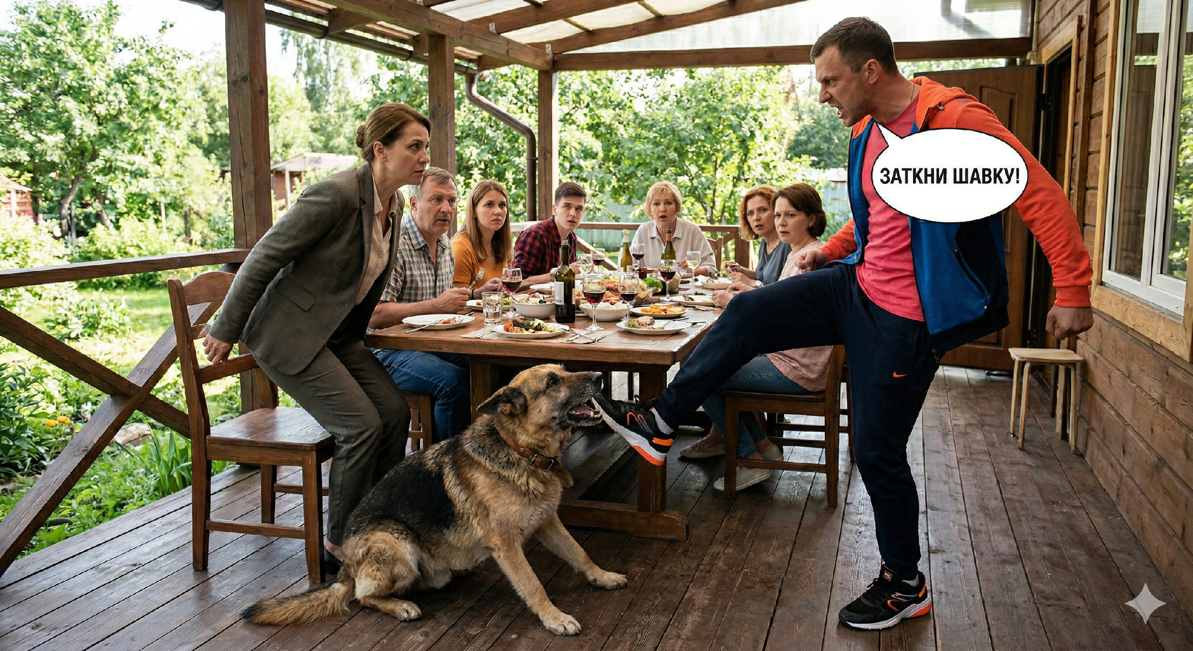 Стас, мой муж, сидел рядом. Он замер с вилкой, на которую был наколот кусок помидора. Посмотрел на брата, потом на меня, потом на Ладу, которая медленно отползала к крыльцу, волоча задние лапы.