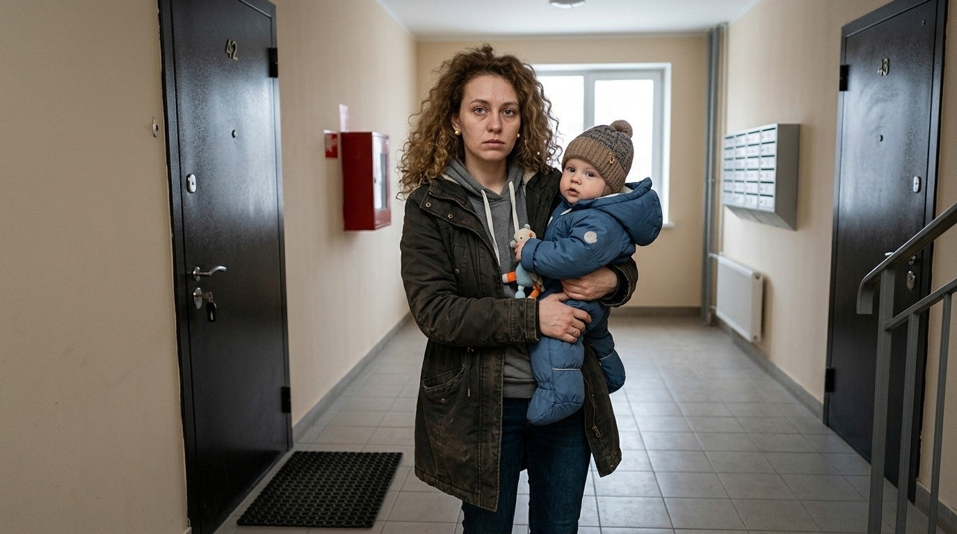 Вика стояла на пороге – бледная, с усталым лицом, в мятой куртке не по сезону. На руках у неё был ребёнок. Маленький, в голубом комбинезоне. Спал, уткнувшись носом ей в плечо.