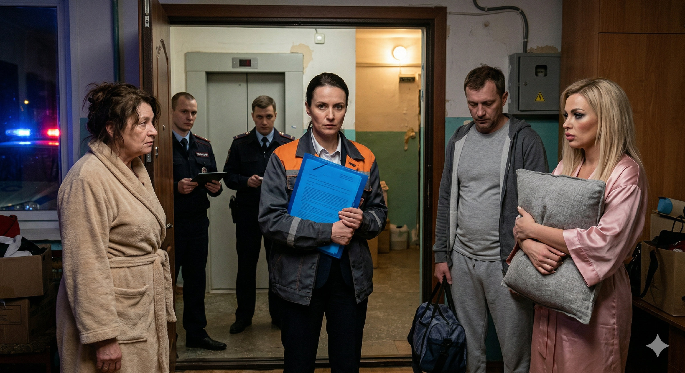 — Доброй ночи. Вызывали? — спросил старший сержант Макаров. Его взгляд мгновенно просканировал прихожую, зафиксировал Ростислава с сумкой, Алину в расстёгнутом пальто и свекровь в халате.