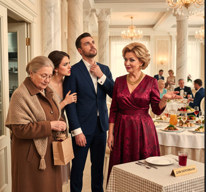 В банкетном зале столы ломились от деликатесов. Красовались блюда с запеченной осетриной, хрустальные бокалы до краев наполнялись дорогим игристым. Римма Аркадьевна уверенно шла впереди, указывая гостям их места.