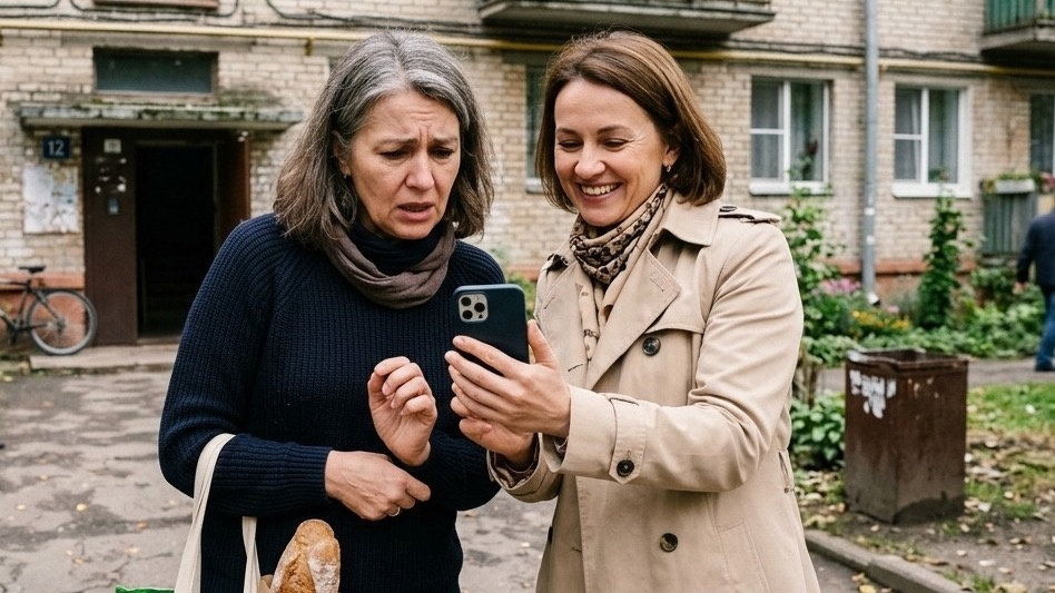 Галина Аркадьевна стояла у лавочки в новом бежевом плаще и листала снимки так бережно, будто они были её собственными. Увидела меня, сразу оживилась ещё сильнее и повернула экран в мою сторону.