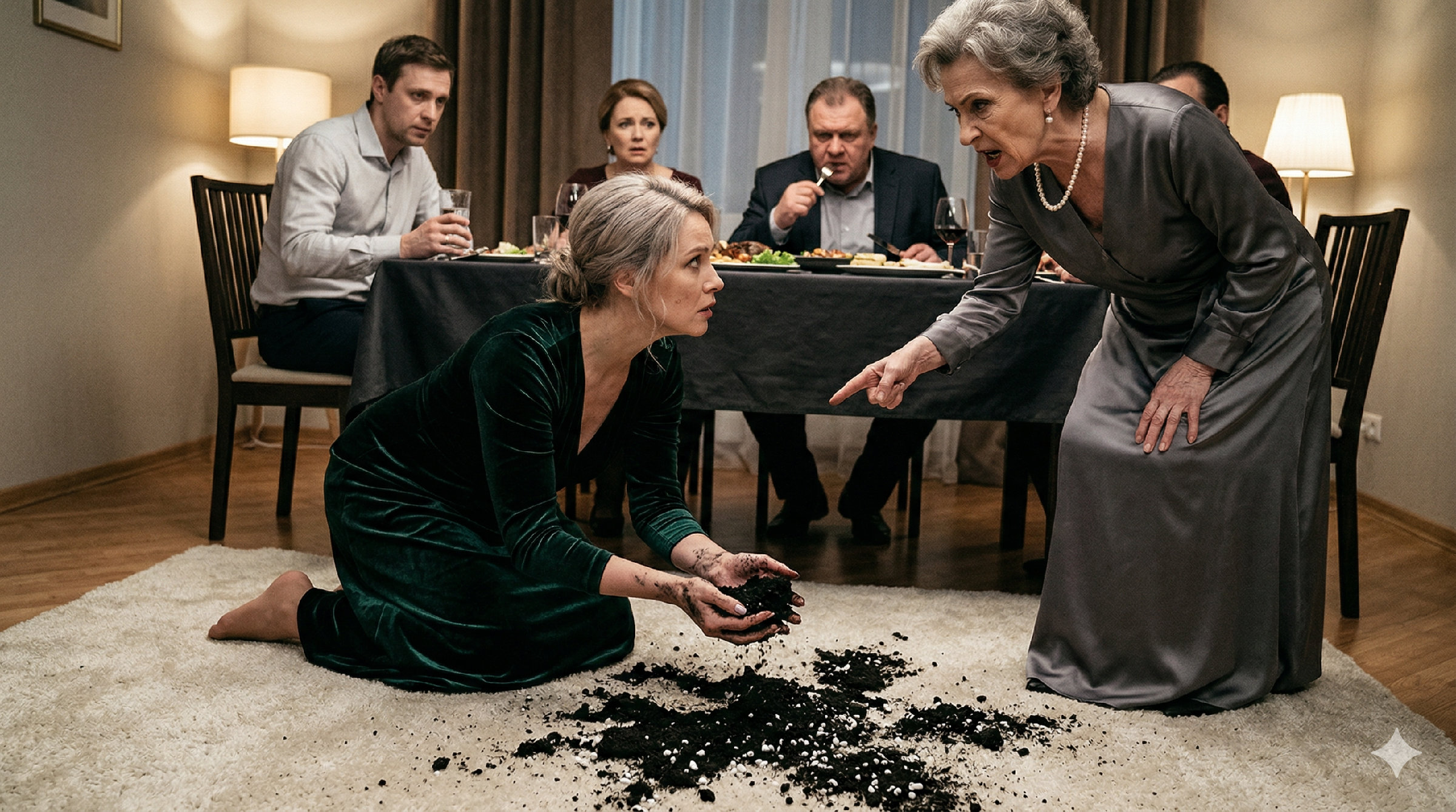 Свекровь при гостях рассыпала мусор по ковру: «Убирай!» Утром муж навсегда выставил её за дверь