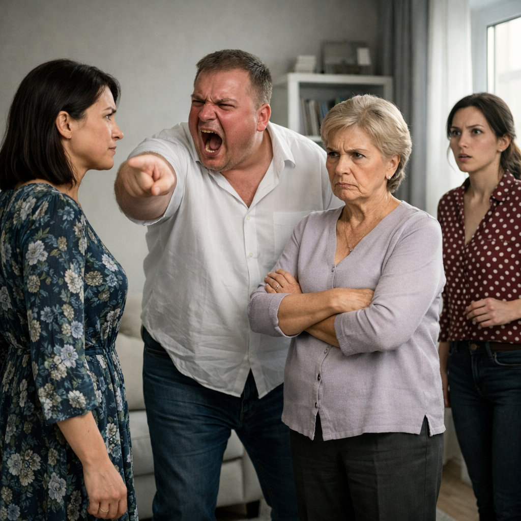 Оля стояла у зеркала — в пальто, с сумкой на плече, только что вернувшаяся домой. Она даже разуться не успела. Просто смотрела на мужа и думала: вот он стоит — сорок два года, живот уже не влезает в прошлогодние джинсы, и такой уверенный в себе, словно Бог лично выдал ему грамоту на правоту.