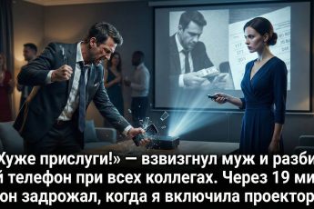 «Хуже прислуги!» — взвизгнул муж и разбил мой телефон при всех коллегах. Через 19 минут он задрожал, когда я включила проектор
